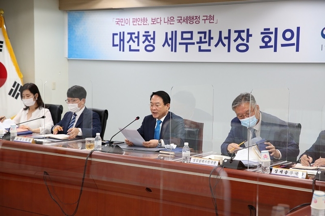 이청룡 대전지방국세청장은 21일 2020 하반기 세무관서장 회의를 주재한 자리에서 “코로나19 및 자연재해로 어려움을 겪는 저소득층 및 영세납세자에 대해 환급금 조기지급, 납기연장, 조사유예 등 적극적인 세정지원을 실시하고, 민생침해·역외탈세 등 악의적 탈세와 불법투기, 변칙 상속·증여에는 단호히 대처해달라”고 당부했다.