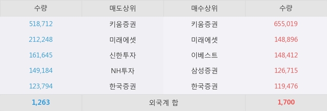 거래원 동향은 미래에셋, 삼성증권 등이 매수 상위 목록에 나타나고 있다.