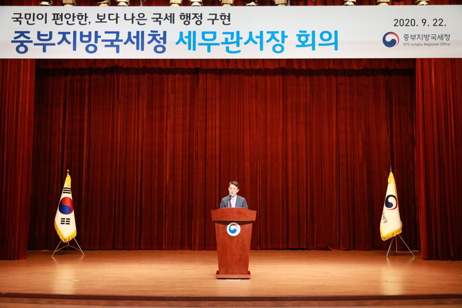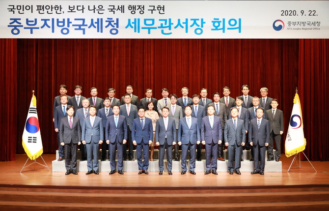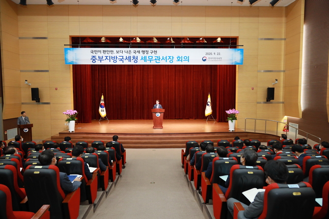 중부지방국세청(이하 중부청) 이준오 청장은 22일 오전 1층 대강당에서 23개 세무서장과 과장급 이상 직원들이 참석한 하반기 관서장회의에서 이같이 당부했다.