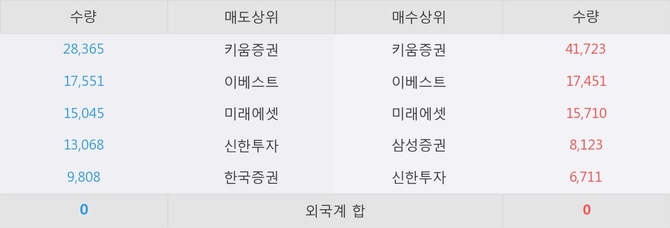 아직까지 외국계 증권사 창구를 통한 매매는 발생하지 않고 있다. 그리고 이 시간 이베스트가 매수창구상위에 올라있는 종목은 이 종목 이외에도 케이피티유, 한온시스템 등이 있다.