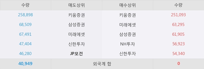 거래원 동향은 미래에셋, 삼성증권, NH투자 등이 매수 상위 목록에 나타나고 있다. 한편, 매도 창구 상위에는 JP모건이 눈에 띄고 있다.
