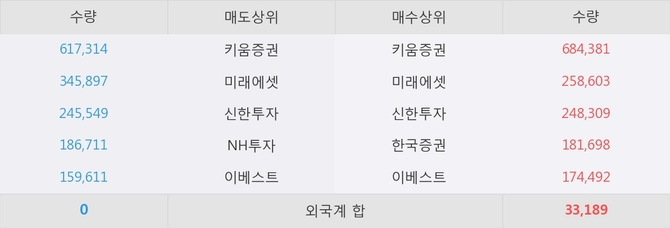 이 시각 주요 거래원은 미래에셋, 키움증권, 신한투자 등이 매수 상위 창구에 자리하고 있다.