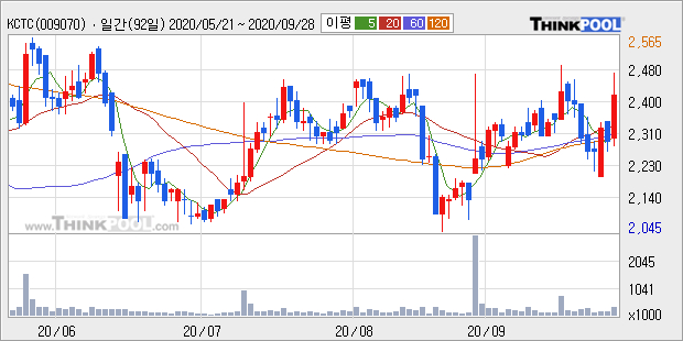 KCTC의 2019년 매출액은 전년대비 11.4% 늘어난 4462억원이고, 영업이익 또한 전년대비 27.1% 늘어난 190억원을 기록했다. 이 회사의 매출액 증감률과 영업이익 증감률은 각각 코스피 상위 23%, 상위 35%에 해당된다.