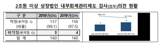 이에 따라 외부 회계법인이 상장사의 내부통제 시스템이 미흡하다고 판단하면 '비적정' 감사의견을 줄 수 있다.