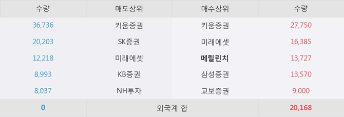 거래원 동향은 메릴린치, 미래에셋, 삼성증권 등이 매수 상위 목록에 나타나고 있다.
