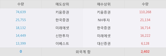 거래원 동향은 NH투자, 미래에셋 등이 매수 상위 목록에 나타나고 있다.