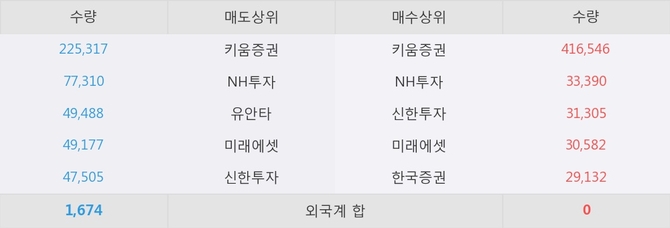 거래원 동향은 NH투자, 미래에셋 등이 매수 상위 목록에 나타나고 있다.
