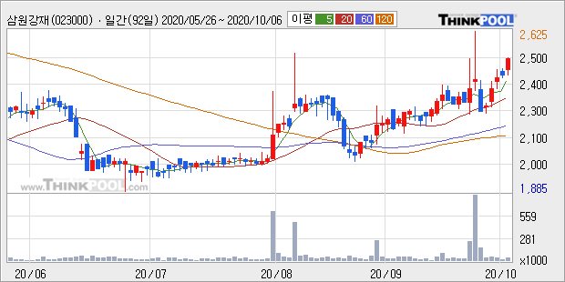 삼원강재의 2019년 매출액은 2693억으로 전년대비 -6.1% 하락했고, 영업이익 역시 108억으로 전년대비 -17.8% 하락했다. 이 회사의 매출액 증감률과 영업이익 증감률은 각각 코스피 하위 24%, 하위 37%에 해당된다.