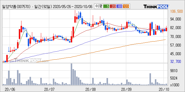 일양약품의 2019년 매출액은 전년대비 8.2% 늘어난 3246억원이고, 영업이익 또한 전년대비 94.4% 늘어난 325억원을 기록했다. 이 회사의 매출액 증감률과 영업이익 증감률은 각각 코스피 상위 29%, 상위 16%에 해당된다.
