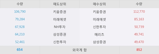 거래원 동향은 미래에셋, 메리츠, 삼성증권 등이 매수 상위 목록에 나타나고 있다.