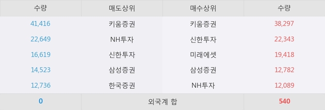 거래원 동향은 미래에셋, 삼성증권, NH투자 등이 매수 상위 목록에 나타나고 있다.