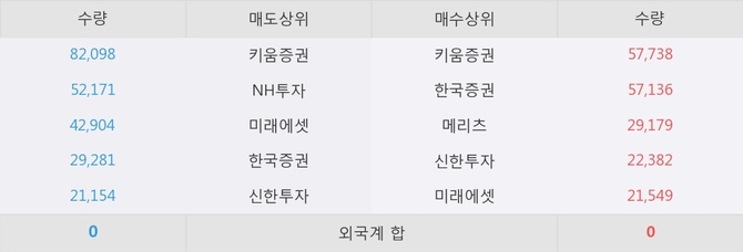 거래원 동향은 메리츠, 미래에셋 등이 매수 상위 목록에 나타나고 있다.