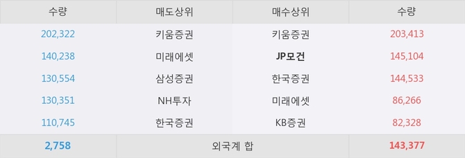거래원 동향은 JP모건, 미래에셋이 매수 상위 목록에 나타나고 있다.