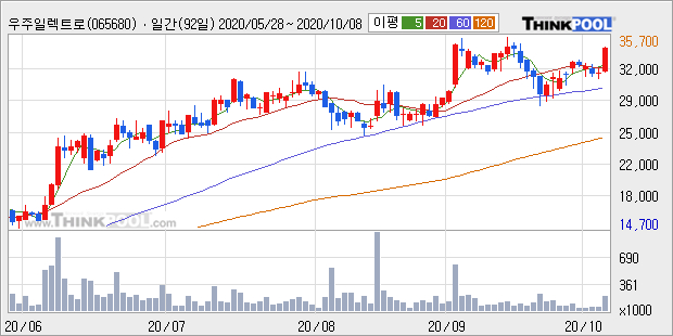 차트상 주가의 흐름은 현재 단기·중기 이평선이 정배열 상태로 전형적인 상승세를 보이고 있다. 이 종목의 차트에서 최근에 골든크로스, 주가 5MA 상향돌파 등을 확인할 수 있다