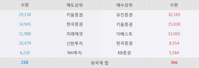현재 거래원 동향은 유진증권, 키움증권, 이베스트 등이 매수 상위 목록에 나타나고 있다.