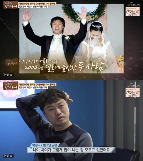 지난 2004년 6살 어린 남편과 결혼에 골인한 원미연은 TV조선 '인생다큐-마이웨이'에 출연해 러브스토리를 전했다.