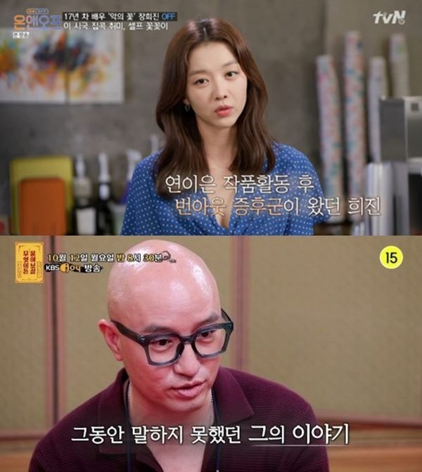 또한 데뷔 17년 차 배우 장희진 역시 '번아웃 증후군'이 왔었다고 고백했다. 그는 "연이은 작품 활동으로 번아웃 증후군이 왔다"며 "슬럼프 벗어나려고 했는데 안 됐을때 꽃꽂이를 시작했다"고 밝혔다.
