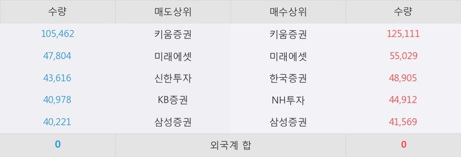 거래원 동향은 미래에셋, NH투자, 삼성증권 등이 매수 상위 목록에 나타나고 있다.