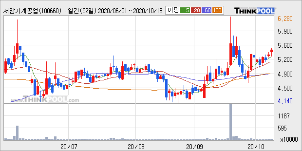 서암기계공업의 2019년 매출액은 전년대비 -9.4% 줄어든 384억원이고, 영업이익 역시 전년대비 -50.8% 줄어든 15억원을 기록했다. 이 회사의 매출액 증감률과 영업이익 증감률은 각각 코스닥 하위 24%, 하위 27%에 해당된다.
