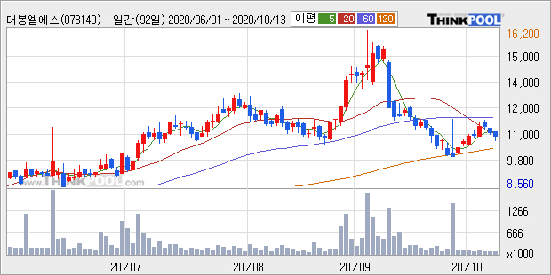 [그래프]대봉엘에스 일봉 차트