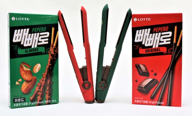‘빼빼로 프렌즈 고데기’는 초코 빼빼로 디자인과 아몬드 빼빼로 디자인 2종으로 각 4,000개씩 총 8,000개 한정 수량이다. 이는 10월 15일부터 홈플러스, 롯데마트 매장에서 빼빼로를 35,000원 이상 구입한 소비자들에게 선착순으로 무료 증정된다.