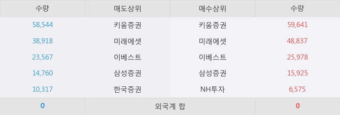 거래원 동향은 미래에셋, 삼성증권, NH투자 등이 매수 상위 목록에 나타나고 있다.