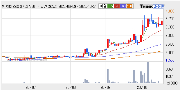 인지디스플레는 2019년 매출액 5578억원과 영업이익 238억원을 기록했다. 전년대비 매출은 8.4%, 영업이익은 7.6% 각각 상승했다. 이 회사의 매출액 증감률과 영업이익 증감률은 각각 코스닥 상위 43%, 상위 46%에 해당된다.
