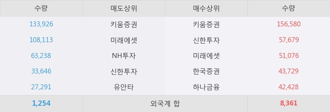 거래원 동향은 미래에셋, 하나금융 등이 매수 상위 목록에 나타나고 있다.