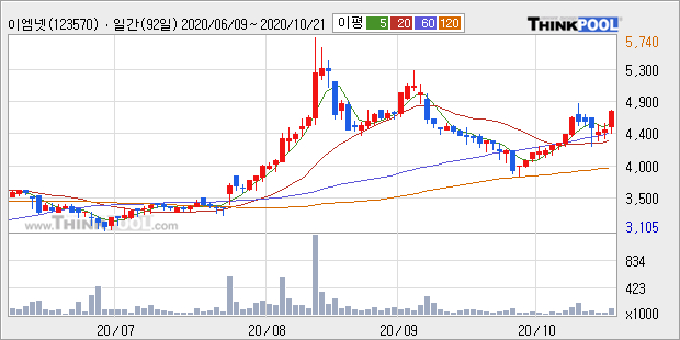 이엠넷의 2019년 매출액은 전년대비 16.1% 늘어난 367억원이고, 영업이익 또한 전년대비 39.4% 늘어난 77억원을 기록했다. 이 회사의 매출액 증감률과 영업이익 증감률은 각각 코스닥 상위 29%, 상위 31%에 해당된다.
