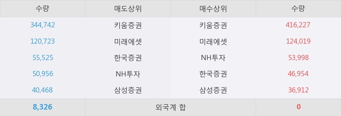 거래원 동향은 미래에셋, NH투자, 삼성증권 등이 매수 상위 목록에 나타나고 있다.