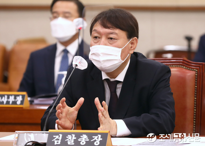 (조세금융신문=김용진 기자) 윤석열 검찰총장이 22일 국회 법제사법위원회에서 열린 국정감사에서 의원 질의에 답변하고 있다.