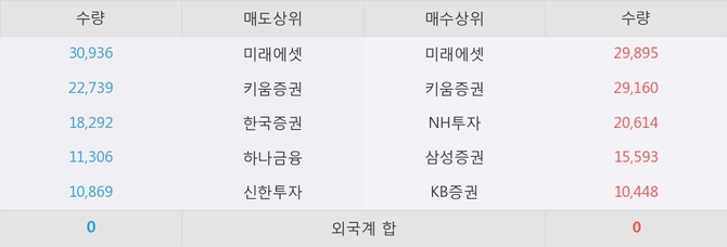 거래원 동향은 미래에셋, NH투자, 삼성증권 등이 매수 상위 목록에 나타나고 있다.