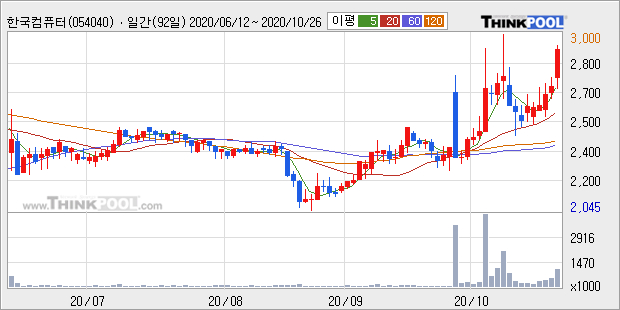 한국컴퓨터의 2019년 매출액은 1104억으로 전년대비 -3.3% 하락했고, 영업이익은 72억으로 흑자전환했다. 이 회사의 매출액 증감률과 영업이익 증감률은 각각 코스닥 하위 33%, 상위 8%에 해당된다.