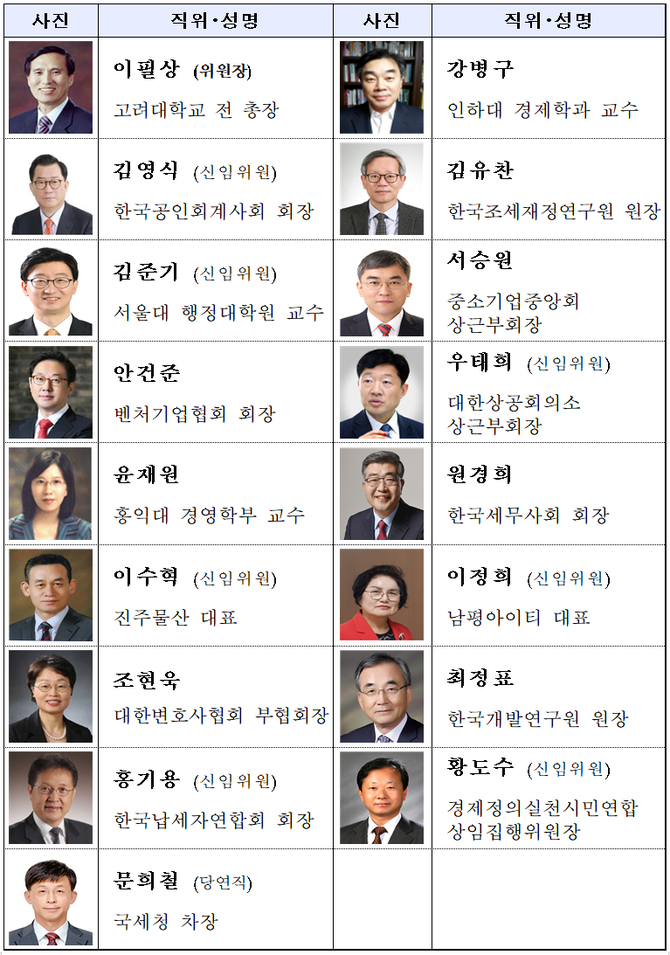 한편 위원회는 전임 위원들의 이동에 따라 김영식 한국공인회계사회 회장, 우태희 대한상공회의소 상근부회장, 홍기용 한국납세자연합회 회장, 황도수 경제정의실천시민연합 상임집행위원장을 새롭게 개혁위원으로 위촉했다.
