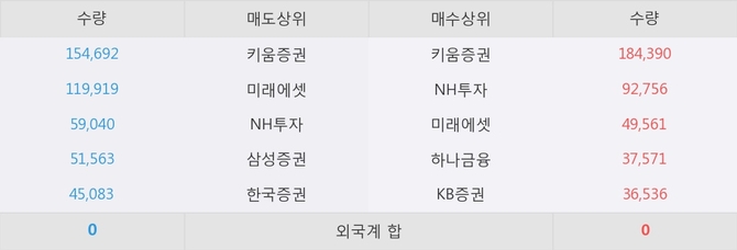 거래원 동향은 NH투자, 미래에셋, 하나금융 등이 매수 상위 목록에 나타나고 있다.