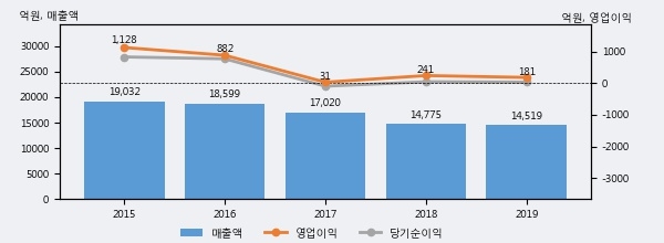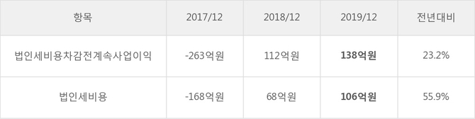 최근 3년간의 실적을 살펴보면, 매출액은 3년 연속 하락하고 있으나 그 하락폭은 줄어들고 있음을 알 수 있다.