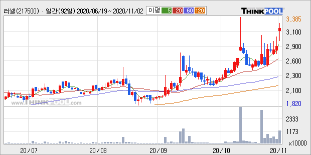 러셀의 2019년 매출액은 410억으로 전년대비 31.3% 상승했고, 영업이익은 49억으로 전년대비 -13.2% 하락했다. 이 회사의 매출액 증감률과 영업이익 증감률은 각각 코스닥 상위 17%, 하위 44%에 해당된다.
