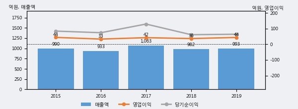 에이텍의 2019년 매출액은 전년대비 1.1% 늘어난 993억원이고, 영업이익 또한 전년대비 19.2% 늘어난 44억원을 기록했다. 이 회사의 매출액 증감률과 영업이익 증감률은 각각 코스닥 하위 42%, 상위 39%에 해당된다.
