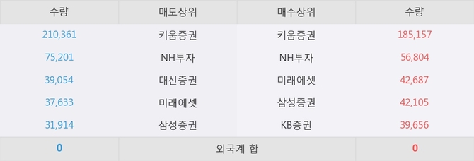 거래원 동향은 NH투자, 미래에셋, 삼성증권 등이 매수 상위 목록에 나타나고 있다.