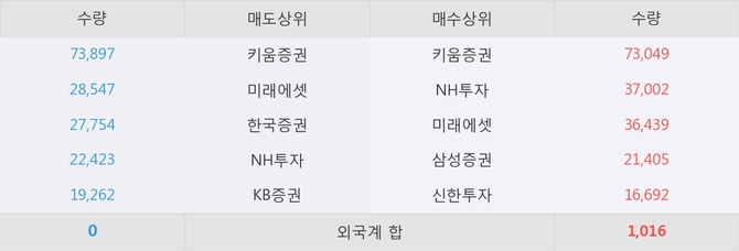 거래원 동향은 NH투자, 미래에셋, 삼성증권 등이 매수 상위 목록에 나타나고 있다.