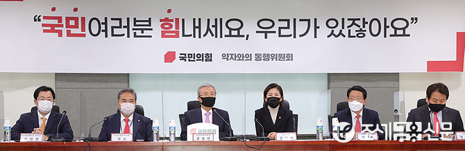 김종인 국민의힘 비대위원장이 이날 약자와의동행위원회 전체회의에서 '약자와의 동행'에 나서지 않는다면 "정당으로서의 의미를 갖지 못할 것"이라고 강조했다.