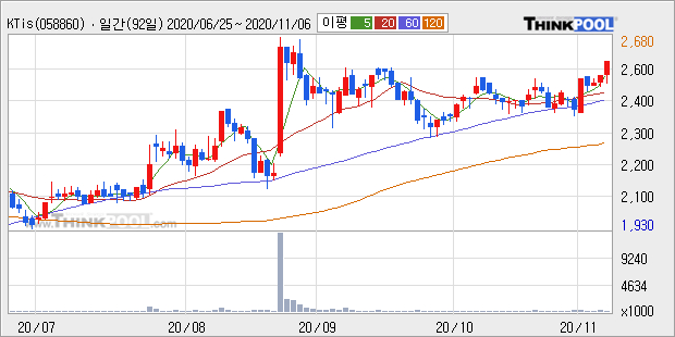 KTis의 2019년 매출액은 전년대비 0.04% 늘어난 4510억원이고, 영업이익 또한 전년대비 52.9% 늘어난 138억원을 기록했다. 이 회사의 매출액 증감률과 영업이익 증감률은 각각 코스피 하위 43%, 상위 26%에 해당된다.