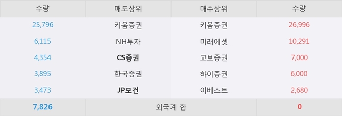 이 시각 주요 거래원은 미래에셋, 키움증권, 교보증권 등이 매수 상위 창구에 자리하고 있다. 한편, 매도 창구 상위에는 CS증권과 JP모건이 눈에 띄고 있다.