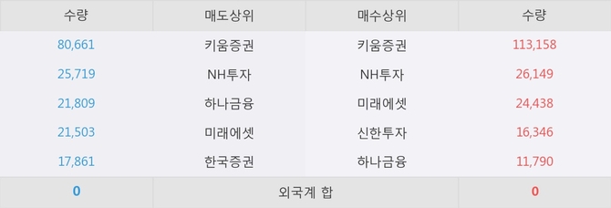 거래원 동향은 NH투자, 미래에셋, 하나금융 등이 매수 상위 목록에 나타나고 있다.