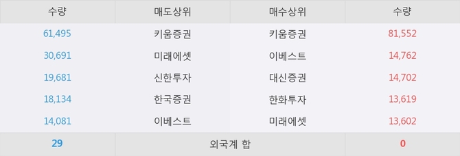 이 시각 주요 거래원은 미래에셋, 키움증권, 이베스트 등이 매수 상위 창구에 자리하고 있다.
