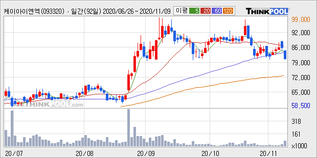 케이아이엔엑스의 2019년 매출액은 646억으로 전년대비 14.8% 상승했고, 영업이익 또한 165억으로 전년대비 25.2% 상승했다. 이 회사의 매출액 증감률과 영업이익 증감률은 각각 코스닥 상위 32%, 상위 37%에 해당된다.