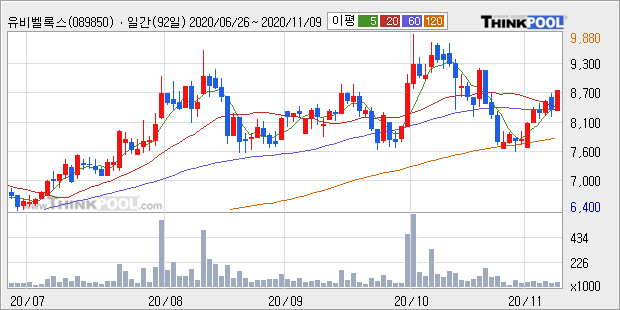 유비벨록스의 2019년 매출액은 2794억으로 전년대비 157.2% 상승했고, 영업이익 또한 78억으로 전년대비 364.7% 상승했다. 이 회사의 매출액 증감률과 영업이익 증감률은 각각 코스닥 상위 2%, 상위 5%에 해당된다.
