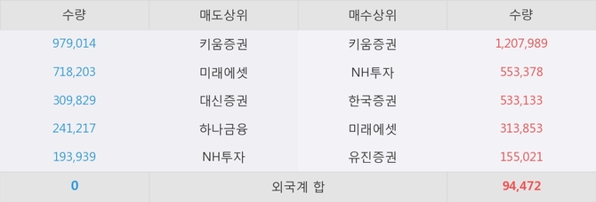 거래원 동향은 NH투자, 미래에셋 등이 매수 상위 목록에 나타나고 있다.