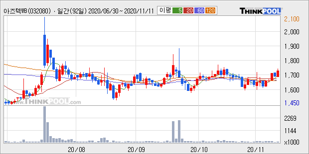 아즈텍WB은 2019년 매출액 446억원과 영업이익 29억원을 기록했다. 전년대비 매출은 -5.2% 하락했고, 영업이익은 42.9% 상승했다. 이 회사의 매출액 증감률과 영업이익 증감률은 각각 코스닥 하위 30%, 상위 29%에 해당된다.