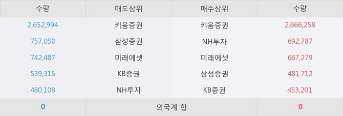 거래원 동향은 NH투자, 미래에셋, 삼성증권 등이 매수 상위 목록에 나타나고 있다.
